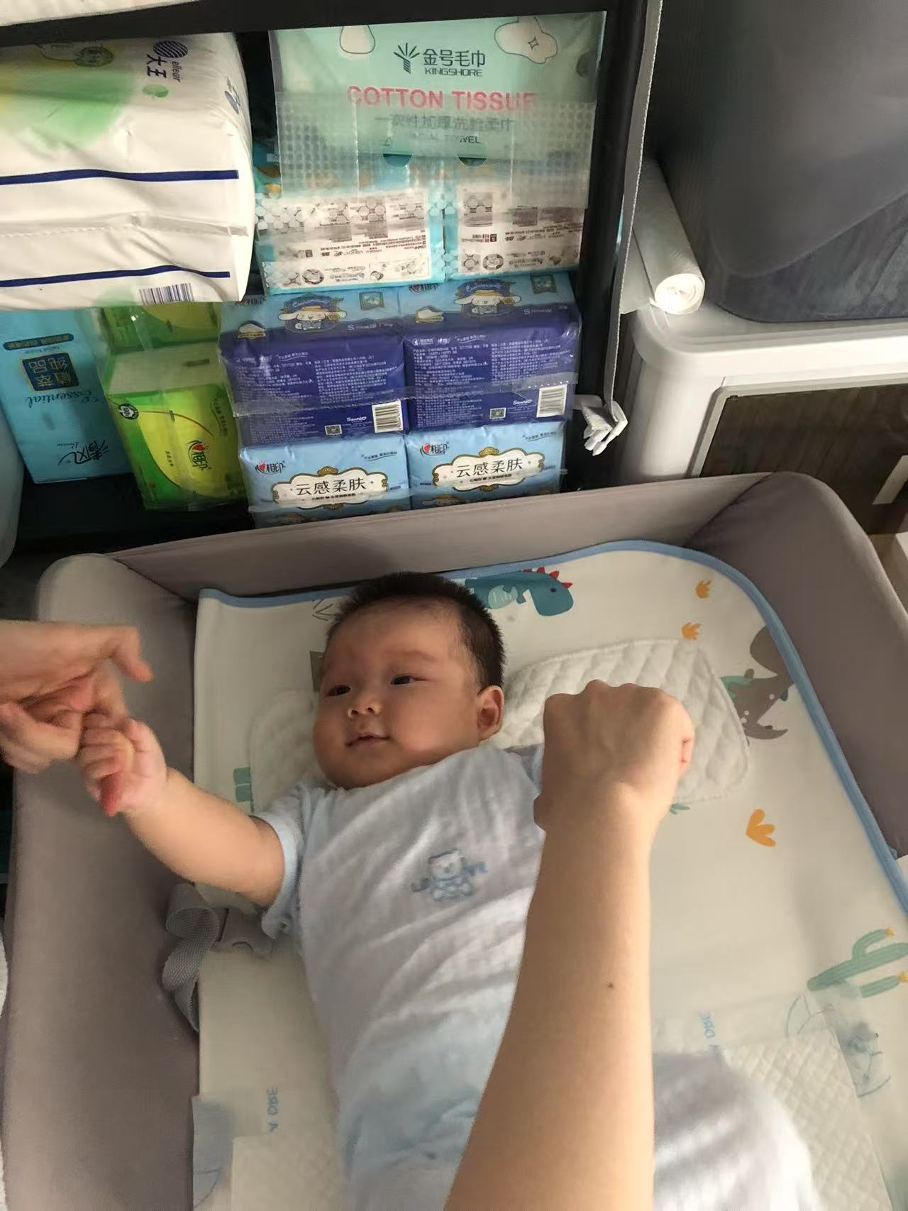 睡眠方面早上7:30起床,夜间睡眠很好,晚上喝奶一觉睡到近4点。