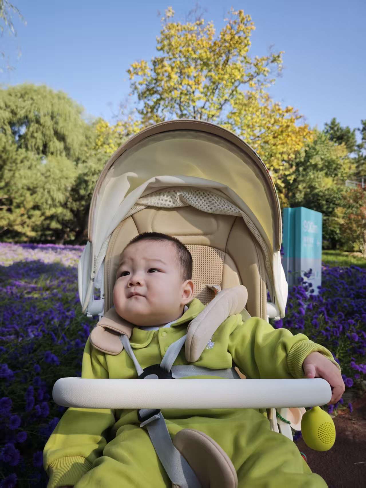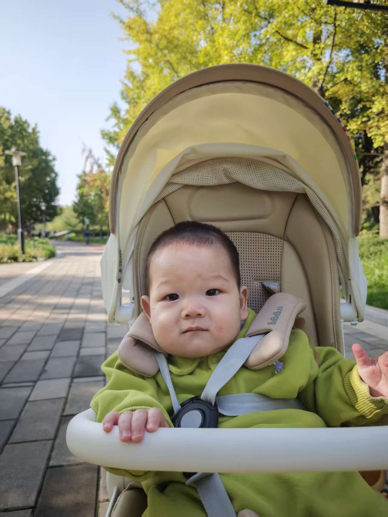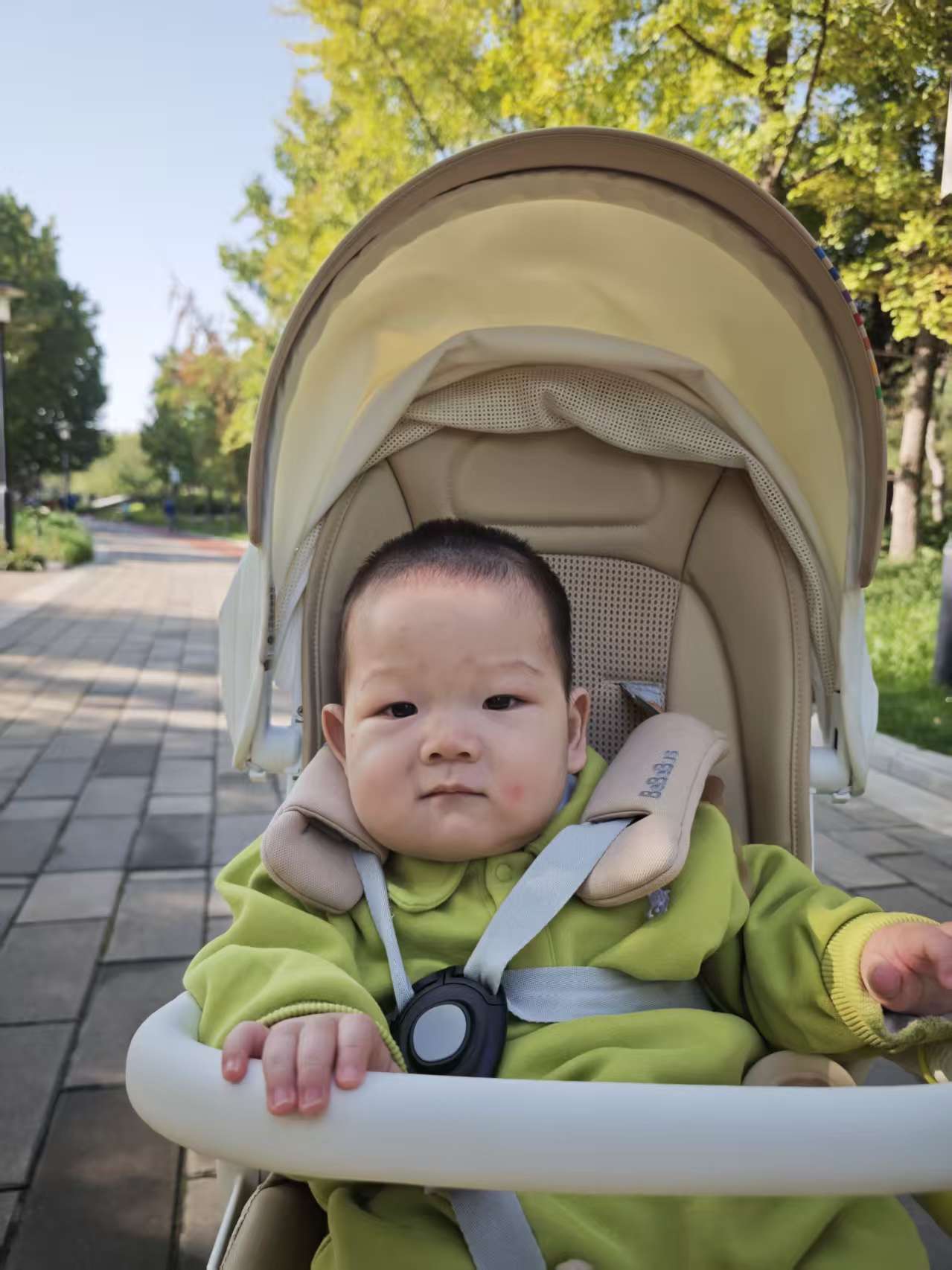 宝宝把红叶握在手心里,触摸到的是季节更迭的痕迹一一叶面干燥如薄脆的笺纸,早已失了夏日绿叶的柔韧。原来,这是秋天寄来的信笺啊:每一道脉络,都在轻轻诉说着关于秋日的诗意。