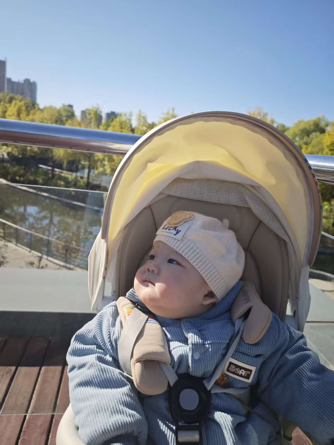 在阳光普照的平台上还偶遇了两个哥哥,看哥哥跑步、踢球、跳舞等,宝宝也手舞足蹈,心情愉悦。