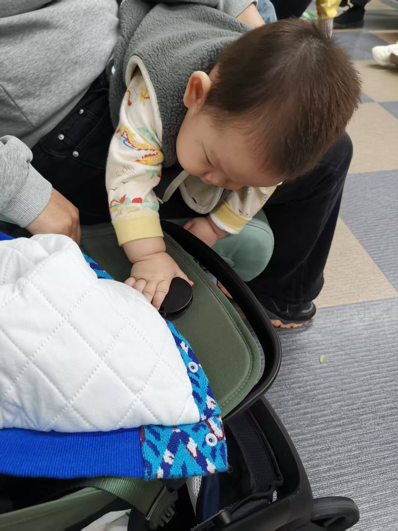 二生活日常与越越的秋日漫步宝宝的脚丫在童车里欢快地蹬动,一阵带着桂花香的微凉秋风,悄悄钻进了他连体衣的毛毛领里。他“咿呀”一声,像只怕痒的小猫,把红扑扑的脸蛋埋进我刚给他围上的小围巾里,一双黑葡萄似的眼睛,闪烁着好奇的光芒,打量着这个忽然变得金灿灿的世界。