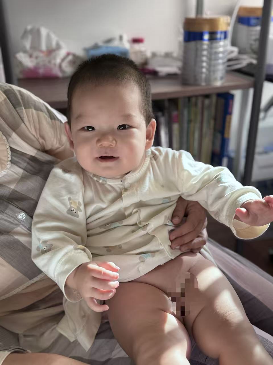 “对!我是爸爸!”宝宝的小脑袋转向爸爸,看了好几秒,非常专注。然后,在大家的期待中,他清晰又奶气地发出了:“爸爸!”字正腔圆!爸爸瞬间眼睛就亮了,响亮地回应: