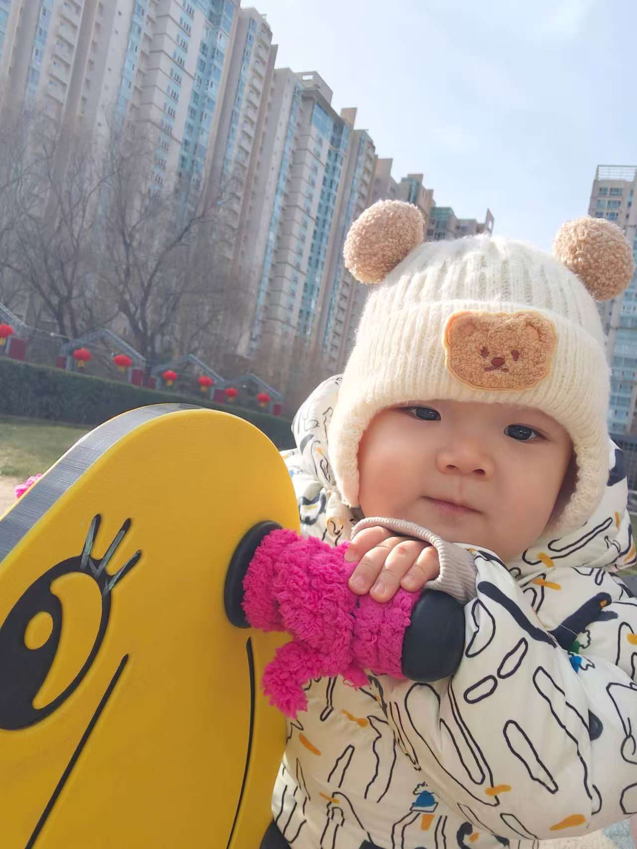 今天真是美好的一天!阳光特别好,虽然风有一点点凉,但晒着太阳暖洋洋的。上午10点半左右,小区里阳光最充足的那片草坪,成了小朋友们的乐园。咱们宝宝也和小伙伴们玩到一起啦!