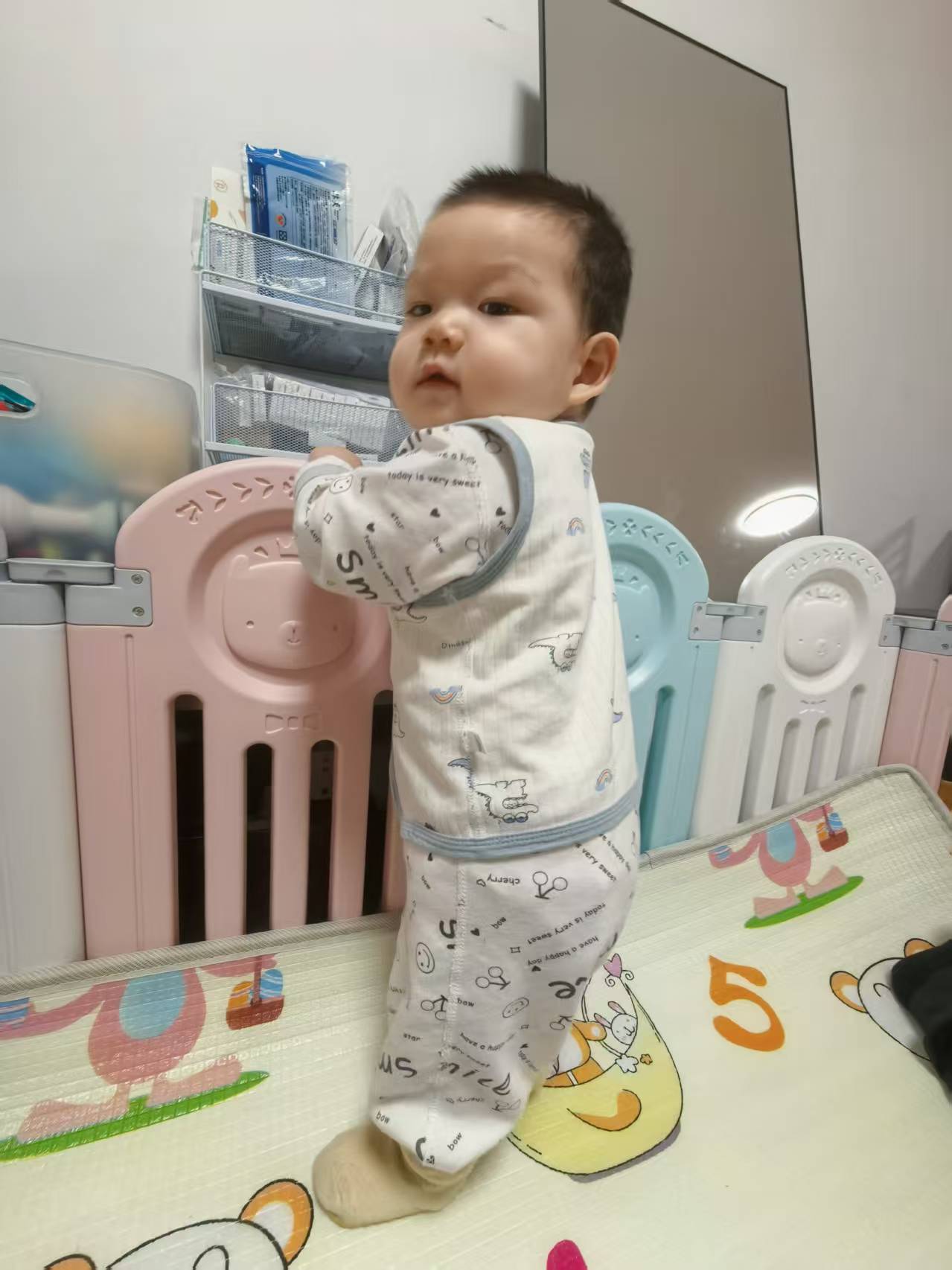 宝宝现在越来越会认人了,看到熟悉的家人就放松自在,遇到陌生叔叔会好奇地盯着看,但不哭不闹,只是静静观察,真是聪明又淡定的小小“社交家”。