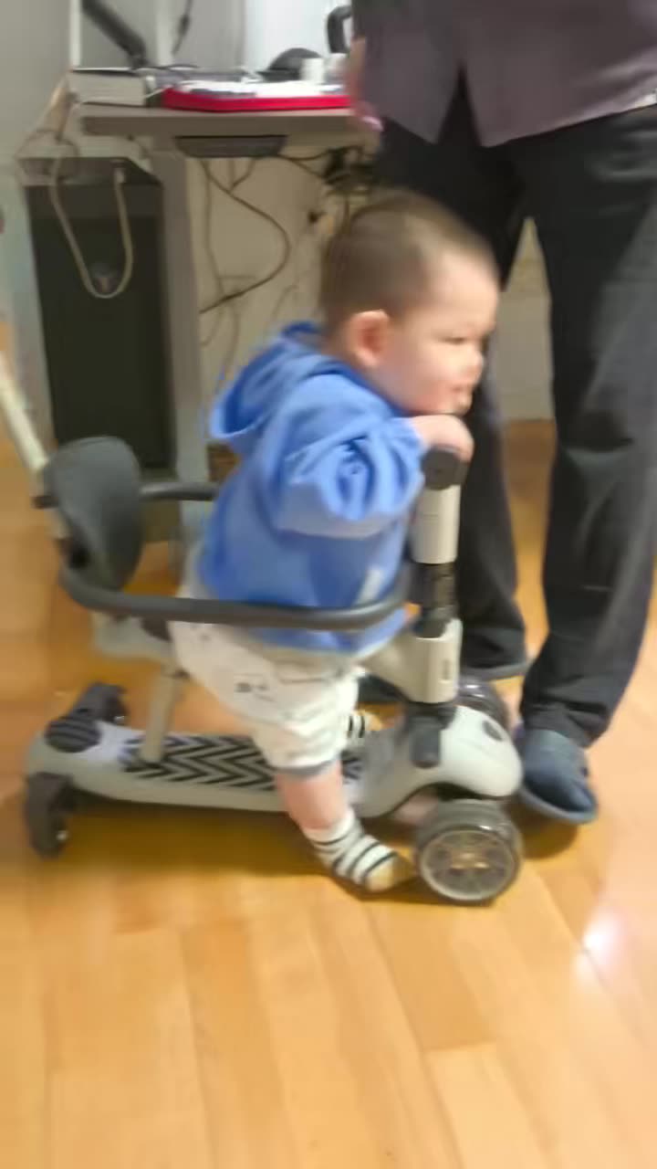 学会了从爬行姿势坐起来。开始是后退爬再坐着,现在能爬行直接坐着